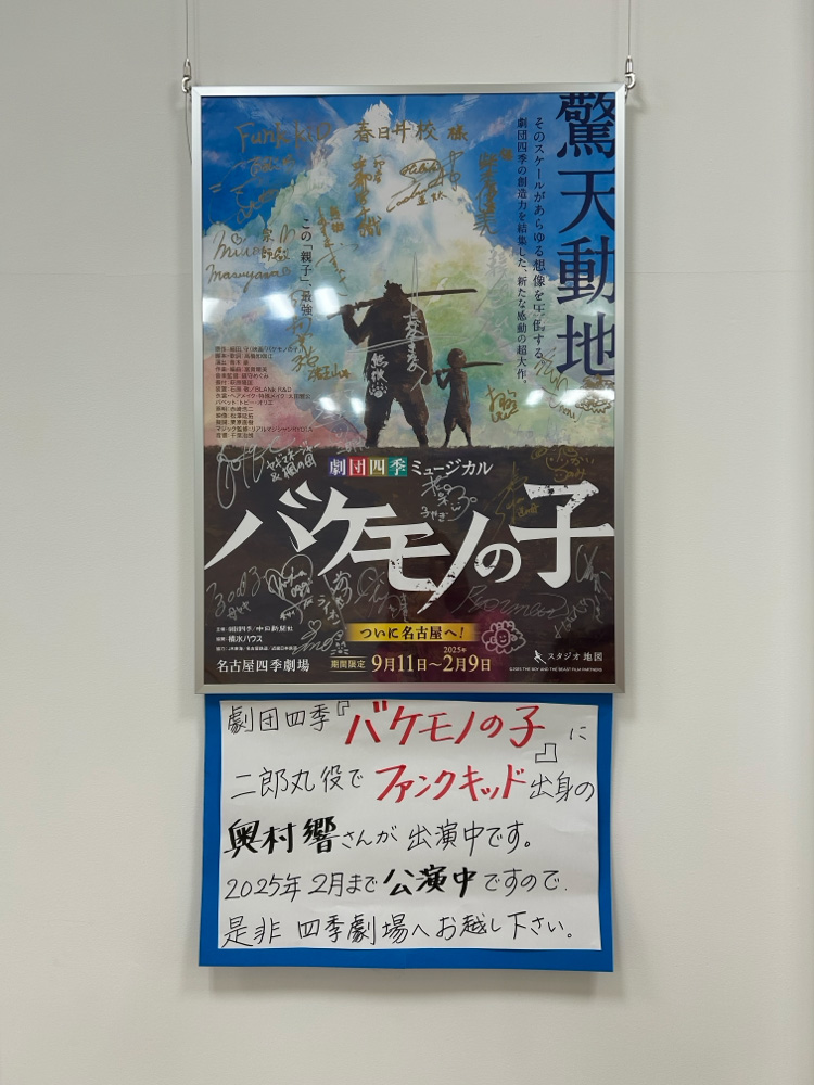 劇団四季“バケモノの子”サイン入りポスター展示中